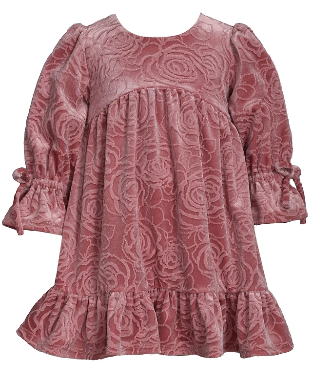 Bonnie Baby Girls Long Sleeve Floral Velvet Dress
