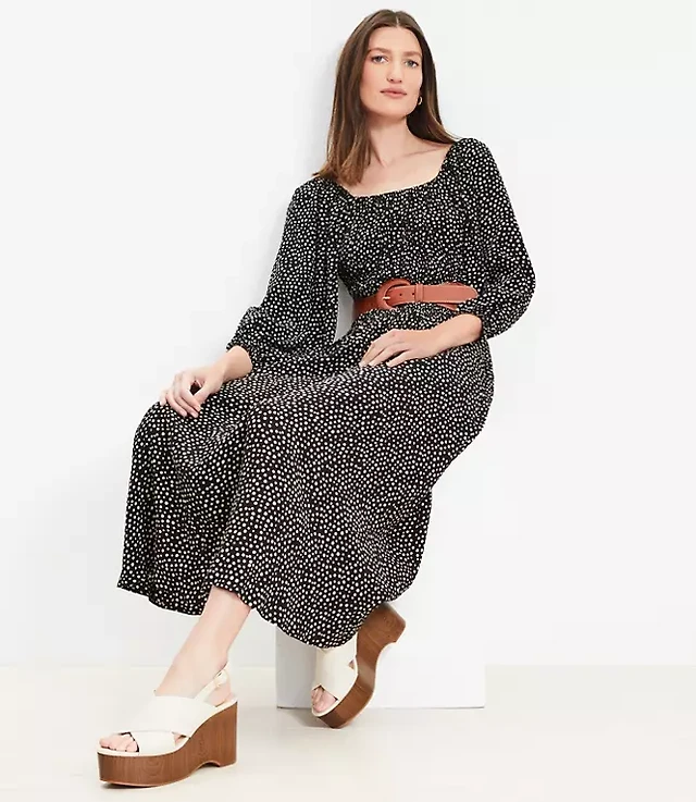 Ann Taylor Petite Floral Smocked Puff Sleeve Dress Black Women's
