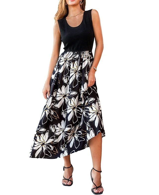 Donna Karan New York Women's Sleeveless Floral A-line Dress