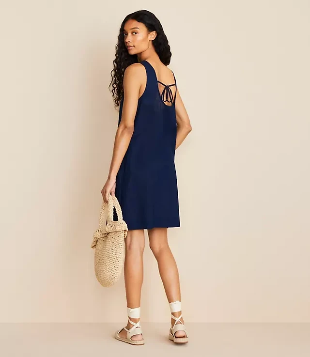 Daisy Street Seersucker Keyhole Tie-Back Smock Mini Dress