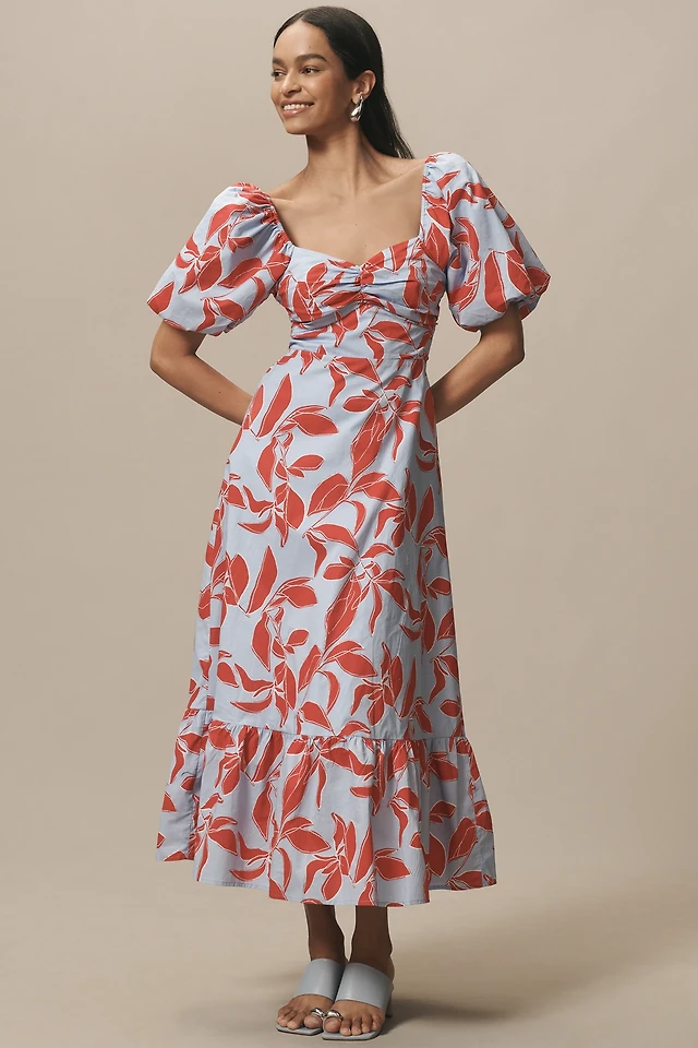 Modenaire Women's Tiered Smocked Bow-Tie Shoulder Midi Dress