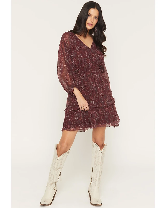 Wild Moss Women's Floral and Paisley Print Hanky Hem Midi Dress