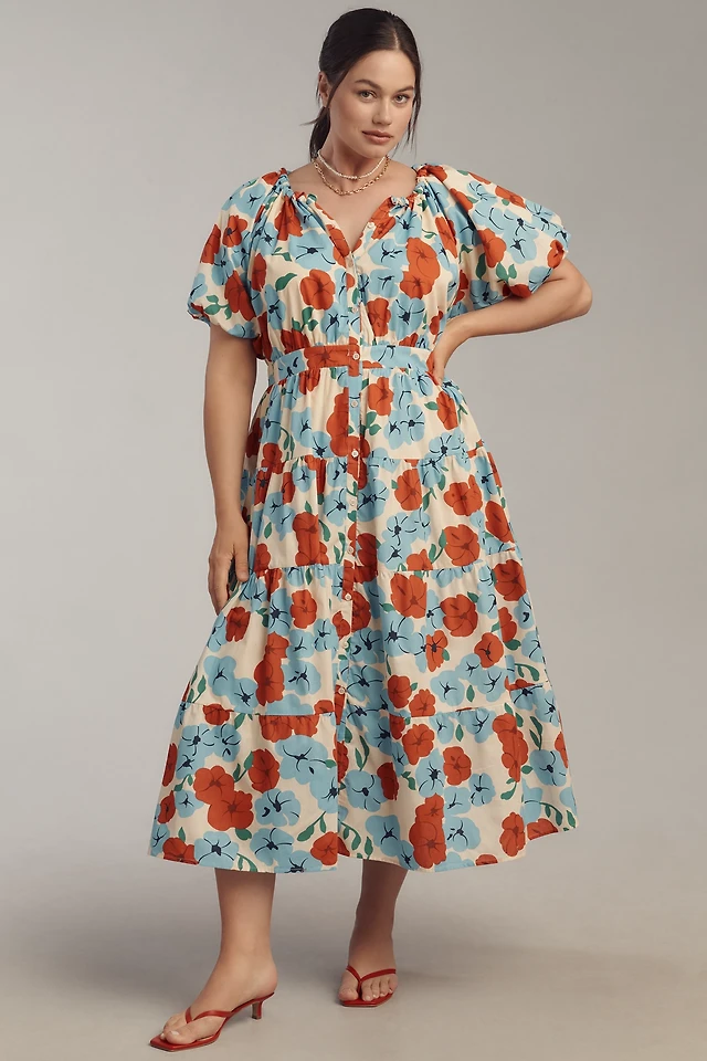 Ella Rafaella Plus Floral Print Gathered Popover Midi Dress