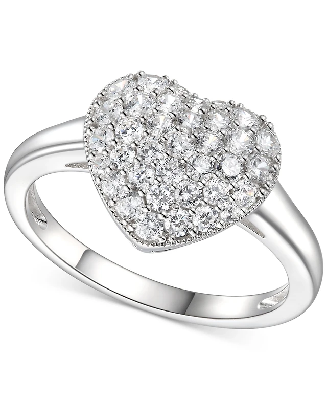 Suzy Levian Sterling Silver Floral Cubic Zirconia Half Band Ring