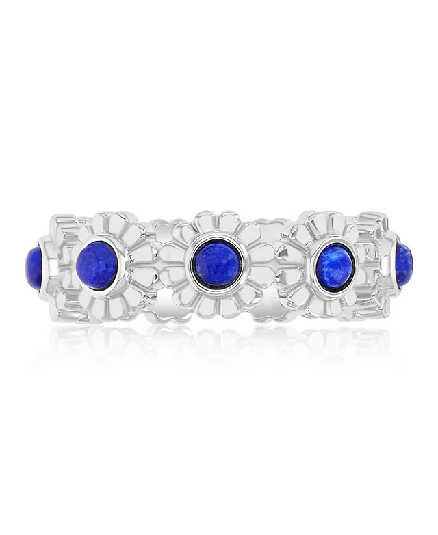 Suzy Levian Sterling Silver Sapphire & Created White Flower Petal Ring