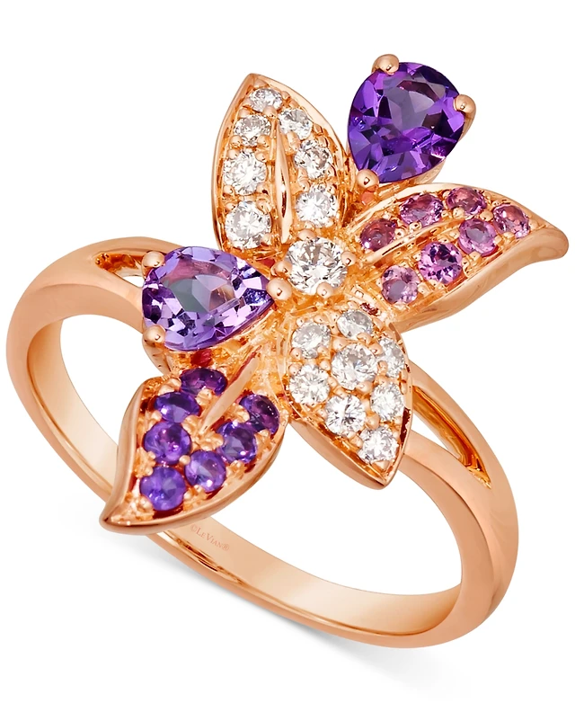 Effy Multi-Stone (5-1/4 ct. t.w.) and Diamond (1/5 Flower Ring 14k Rose Gold