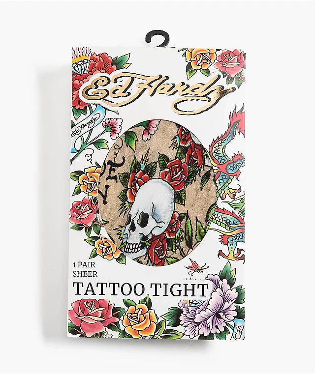 Ed Hardy Floral Tattoo Sheer Nude Tights