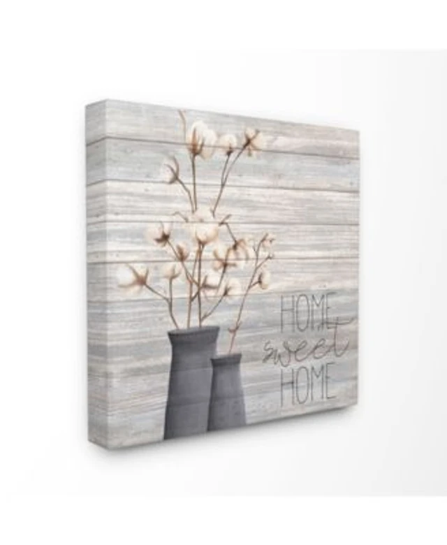 Stupell Industries Gray Home Sweet Home Cotton Flowers in Vase Canvas Wall Art, 17" L x 17" H
