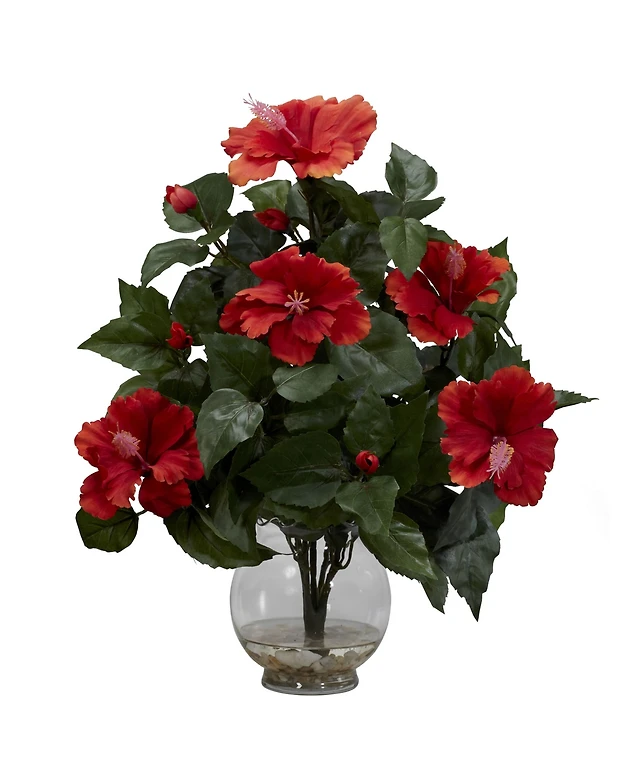 Nearly Natural 8.5" H Red Hydrangea Silk Flower Arrangement w/ Glass Vase
