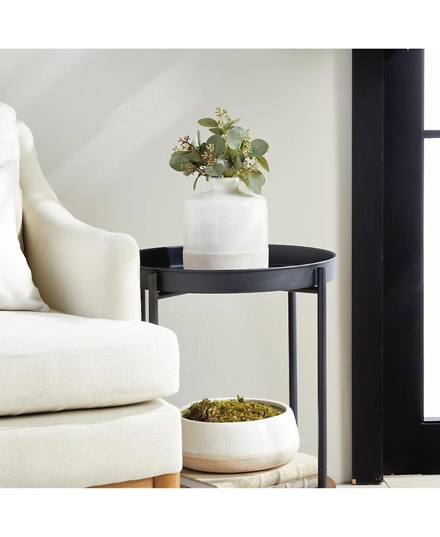 LuxenHome White Ceramic Jug Round Vase with Two Handles