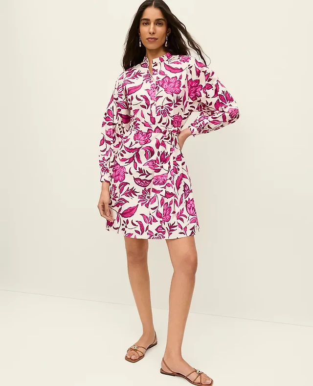 Ann Taylor Floral Belted Shift Dress Pink Women's