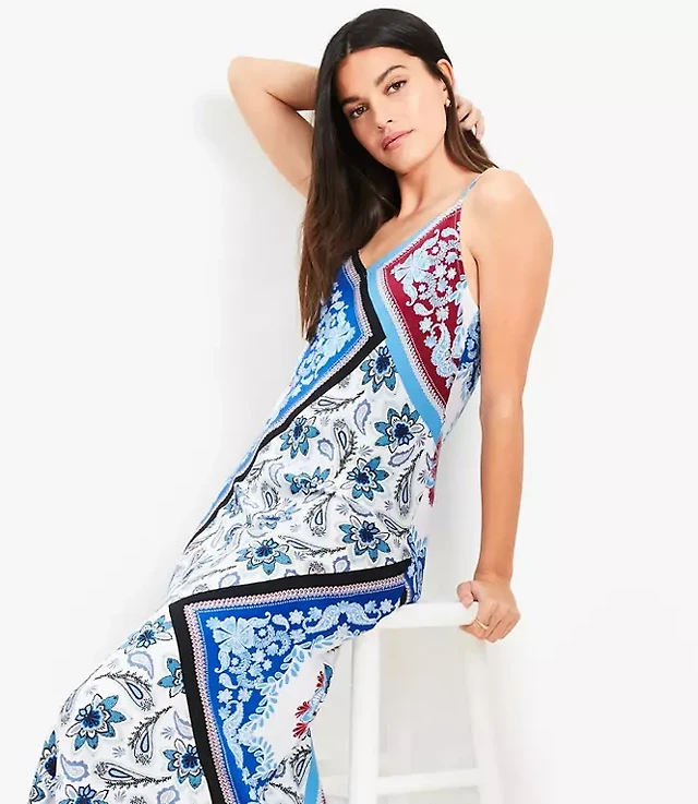 Tiled Strappy Bias Midi Dress