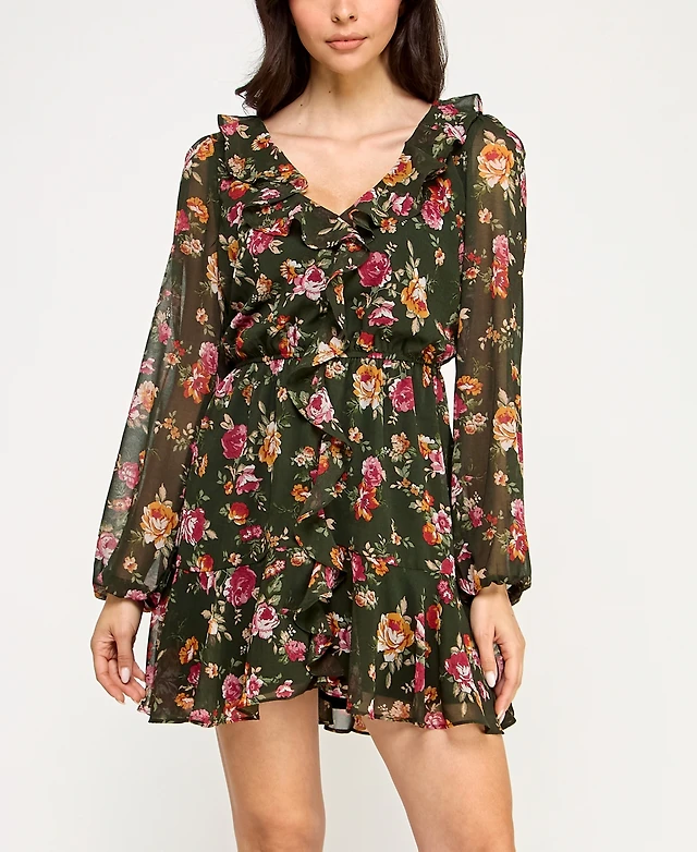 CeCe Women's Long Balloon Sleeve Short Dress