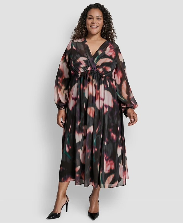 Dkny Plus Long Sleeve Empire Waist Maxi Dress
