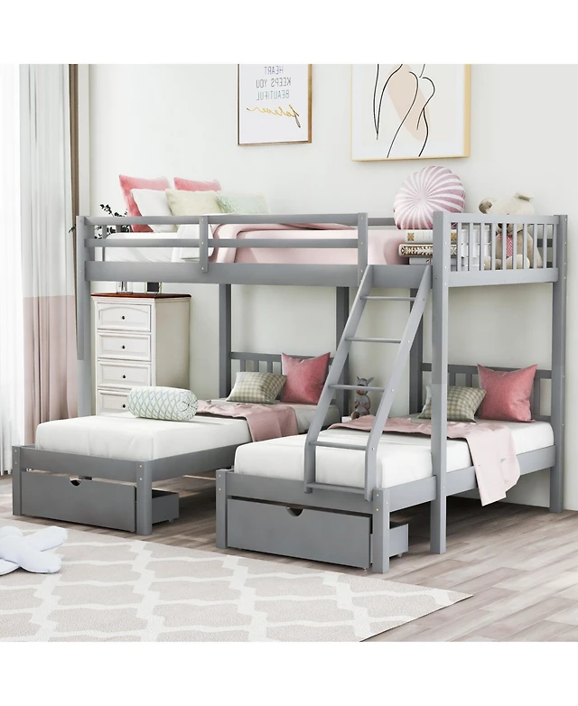Streamdale Furniture Full Over Twin & Twin Triple Bunk Bed with Drawers