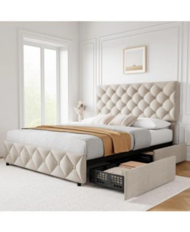 Gaomon Bed Frame With 4 Storage Drawers Adjustable Headboard Linen Upholstered Platform Beds