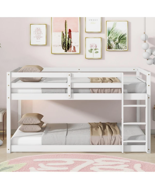 Gymax Twin Over Low Metal Bunk Bed with Ladder Guardrails for Teens Adults