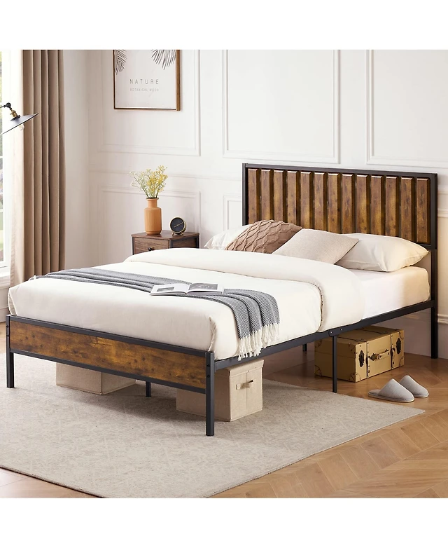 gaomon Full Size Bed Frame with Headboard and Footboard, Metal Twin Bed Frame w/Vintage Circular Design & Storage Space Under Bed, Easy Assembly