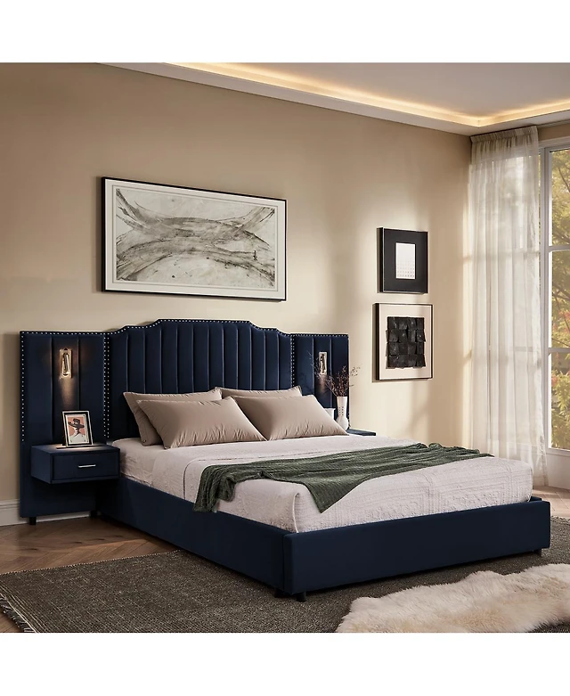 Streamdale Furniture Queen Size Velvet Upholstered Bed Frame with Usb Port