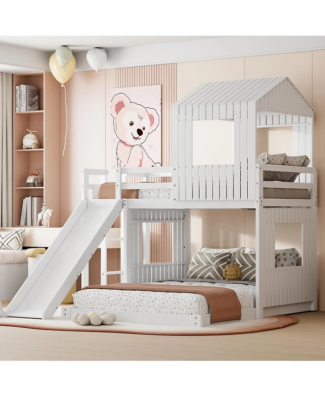 Streamdale White Twin Bunk Bed with Staircase, Slide, and Desk