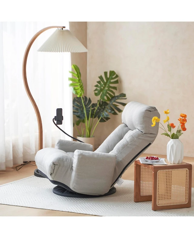 Modern Accent Chair with Folding Footrest and Side Pocket for Living Room