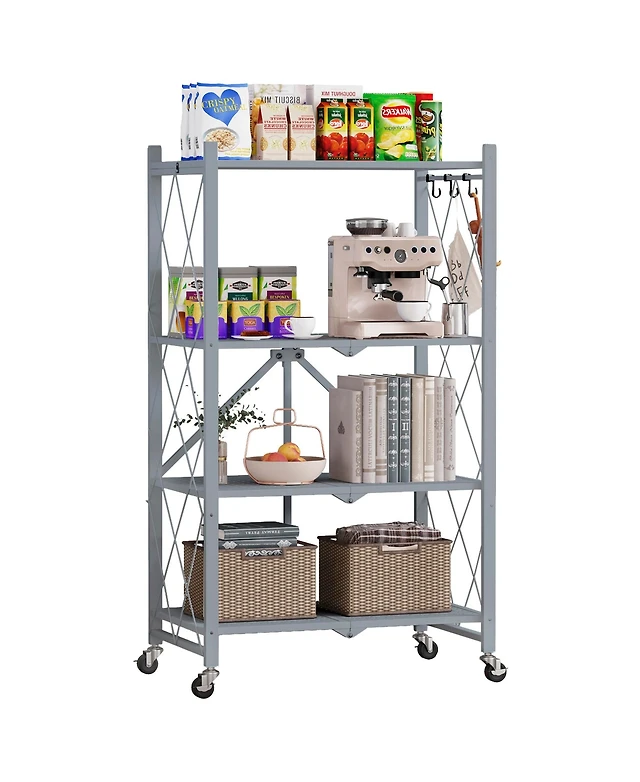 Origami 4 Tier Folding Shelf Garage Shelves Heavy Duty Shelving with Wheels