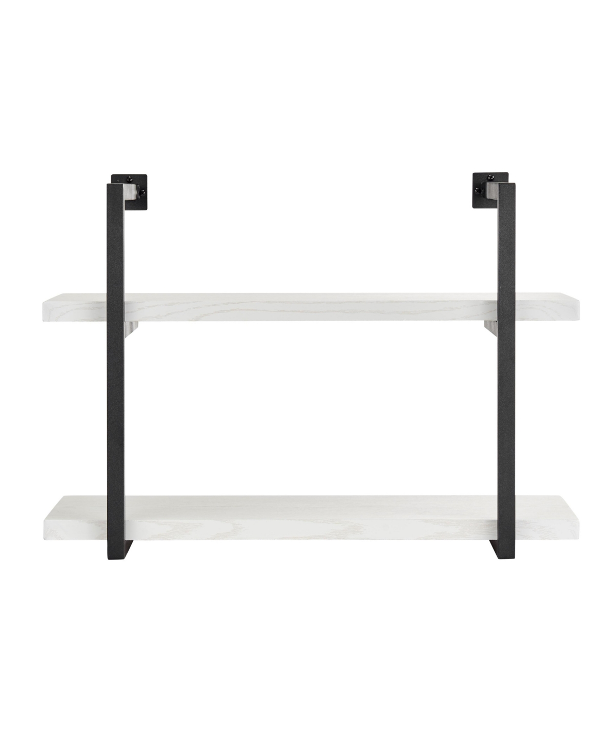 Danya B Modern 2-Tier Bracket Wall Shelves in Black Metal and White Birch Finish