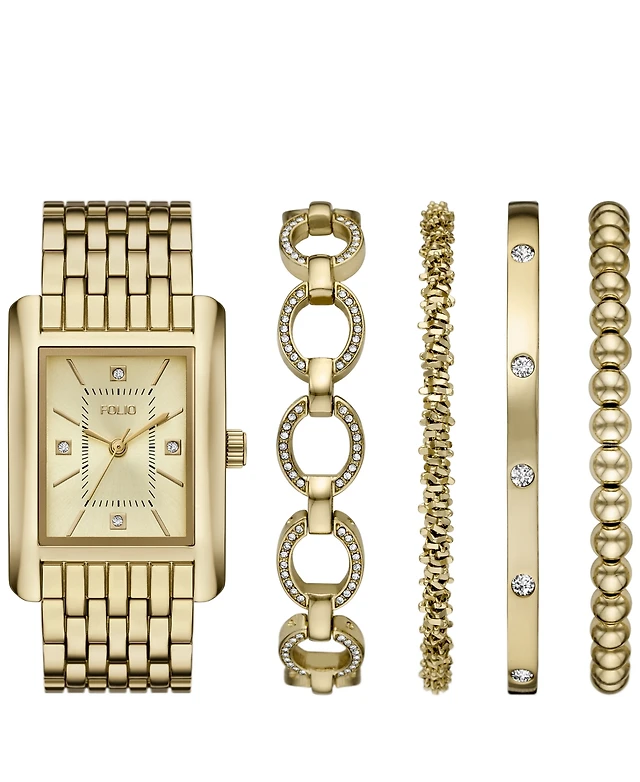 Folio Women's Three Hand Gold-Tone Alloy Watch 26mm Gift Set