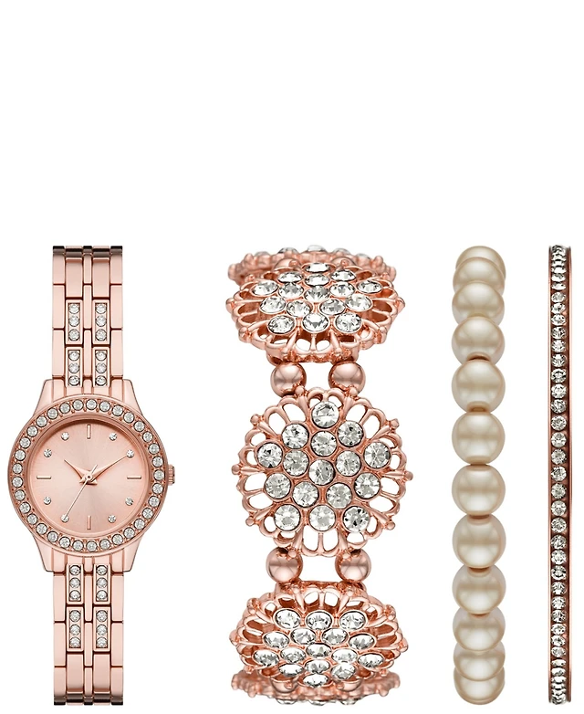 Folio Women's Three Hand Rose-Gold-Tone 31mm Watch and Bracelet Gift Set, 6 Pieces