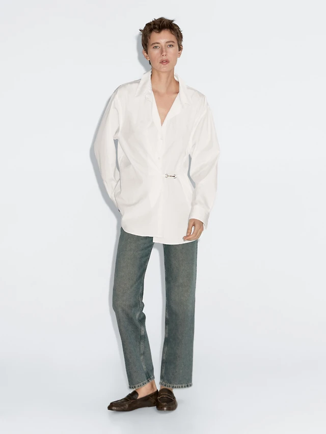 The Ozzi Ruffle-Sleeve Buttondown Shirt by Pilcro