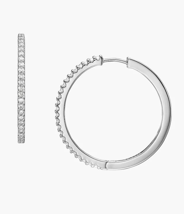 Ellis Pavé Glitz Silver-Tone Brass Hoop Earrings
