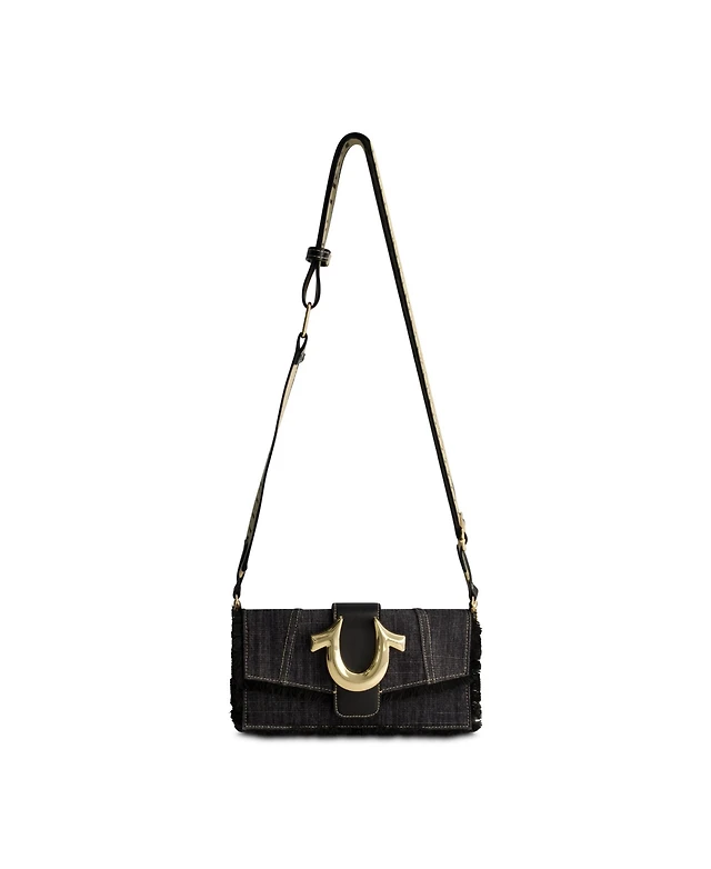 True Religion Wing Motif Denim Hobo Bag with Red Trim