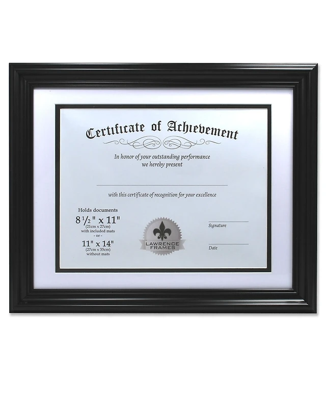 Lawrence Frames Dual Use Black 11" x 14" Certificate Picture Frame with Double Bevel Cut Matting For Document - 8.5" x 11"