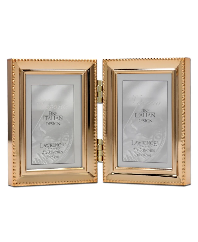 Polished Metal Hinged Double Picture Frame - Bead Border Design