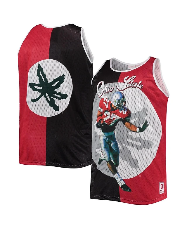 Men's Mitchell & Ness Eddie George Black, Scarlet Ohio State Buckeyes Sublimated Player Big and Tall Tank Top