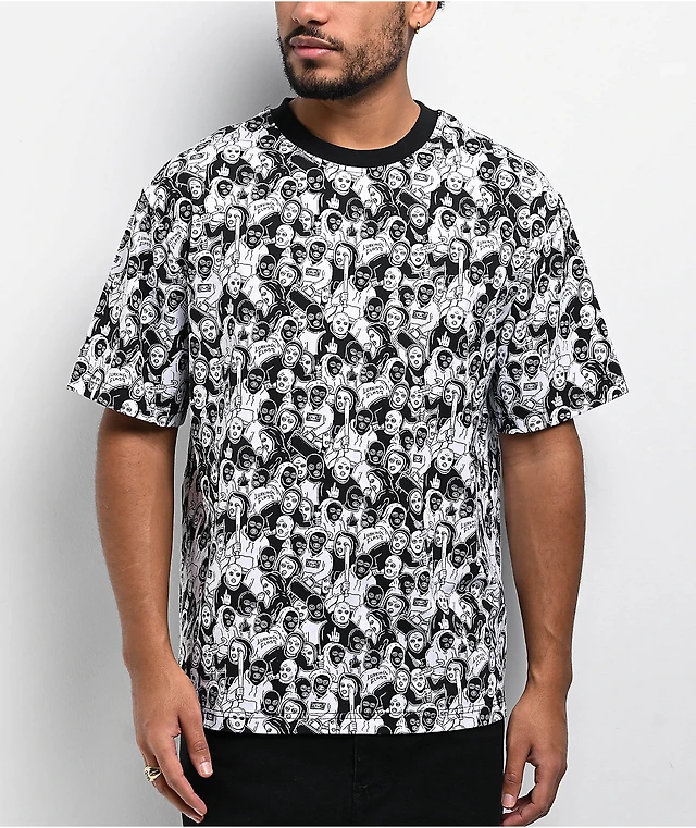 Lurking Class By Sketchy Tank Mob Black & White T-Shirt