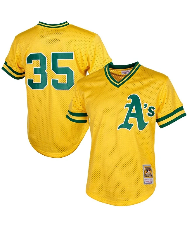 Men's Mitchell & Ness Rickey Henderson Yellow Oakland Athletics Cooperstown Mesh Batting Practice Jersey