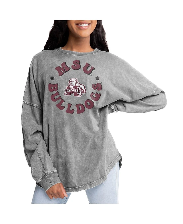 Women's Gameday Couture Gray Distressed Penn State Nittany Lions Vintage-Like Wash Corduroy Full-Snap Hooded Shacket
