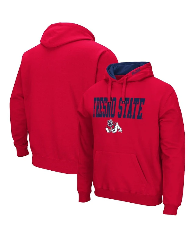 Men's Colosseum Navy Fresno State Bulldogs Arch and Logo Tackle Twill Pullover Sweatshirt