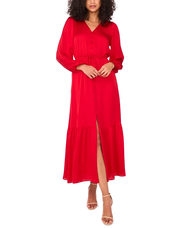 1.state Women's Sleeveless V-Neck Ruffle Maxi Dress
