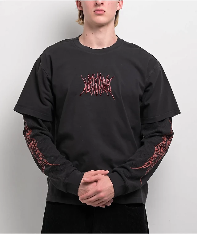 Welcome Castle Layered Knit Black 2fer Long Sleeve T-Shirt
