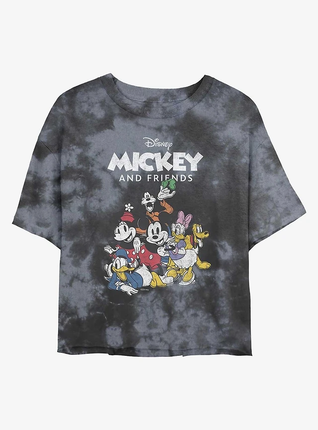 Disney Mickey Mouse Classic Friends Faces Tie Dye Crop Girls T-Shirt