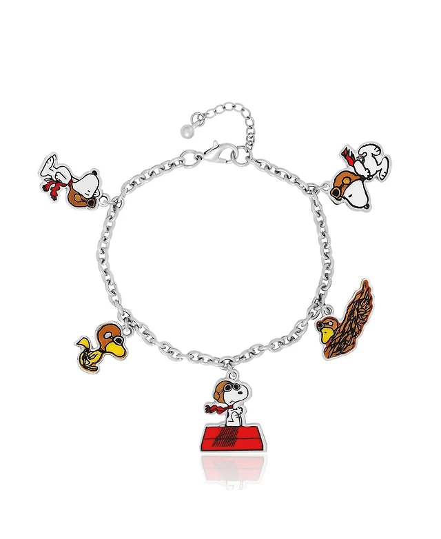 Sanrio Hello Kitty and Friends Womens Silver Plated Bracelet with Flower and Bow Charm Pendants, 6.5 + 1", Officially Licensed
