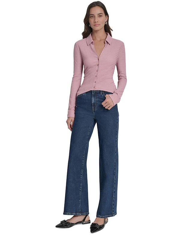 Dkny Women's 3/4-Sleeve Zip Front Top