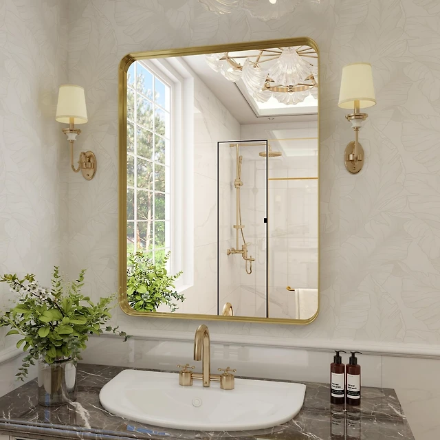 Homlux 30"x40" Gold Deep Frame Bathroom Mirror with Modern Rounded Corners, Horizontal or Vertical Hang
