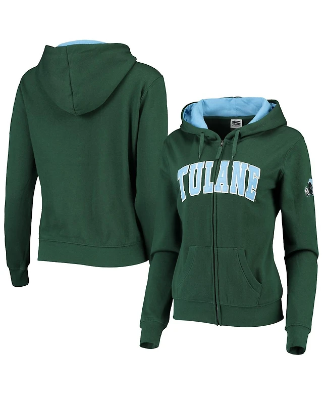 Women's Green Tulane Wave Arched Name Full-Zip Hoodie