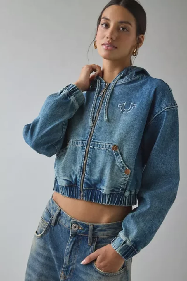 True Religion Horseshoe Graphic Denim Zip-Up Hoodie Sweatshirt