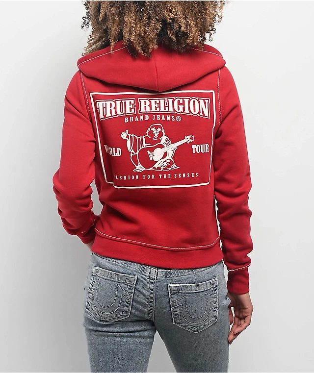 True Religion Cherry Shrunken Black Crop Zip Hoodie
