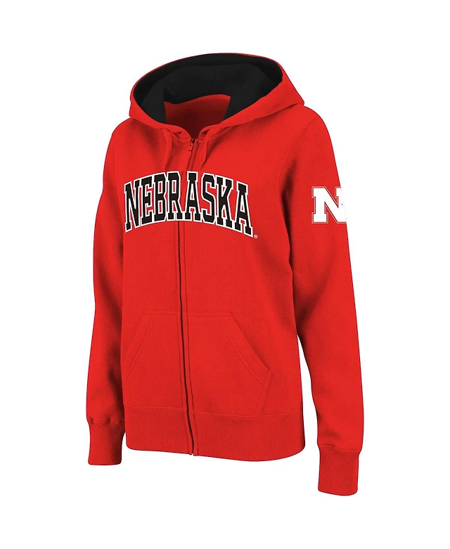 Women's Stadium Athletic Black Nebraska Huskers Arched Name Full-Zip Hoodie