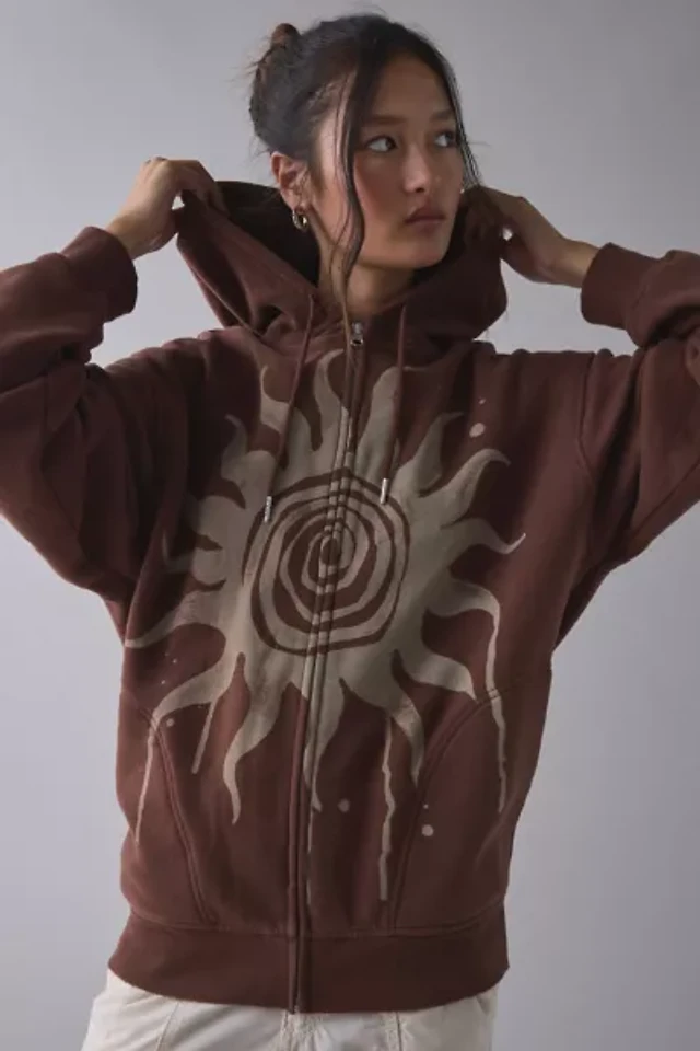 BDG Dusty Heart Breaker Barcode Graphic Oversized Zip-Up Hoodie Sweatshirt